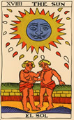 Imagina una mariposa que emerge de su crisálida, transformada en una criatura radiante y llena de vida. "El Colgado" representa la fase de transformación, donde te encuentras en un estado de introspección y sacrificio, mientras que "El Sol" simboliza la liberación y el nuevo comienzo, donde emerges con una perspectiva renovada y lista para volar hacia tus sueños.
