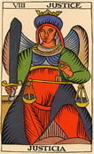 - En el ámbito laboral, La Justicia te pide ser honesto/a, responsable y justo/a en tu trabajo. Es posible que tengas que defender tus derechos o tomar decisiones difíciles para mantener un equilibrio en tu vida profesional.